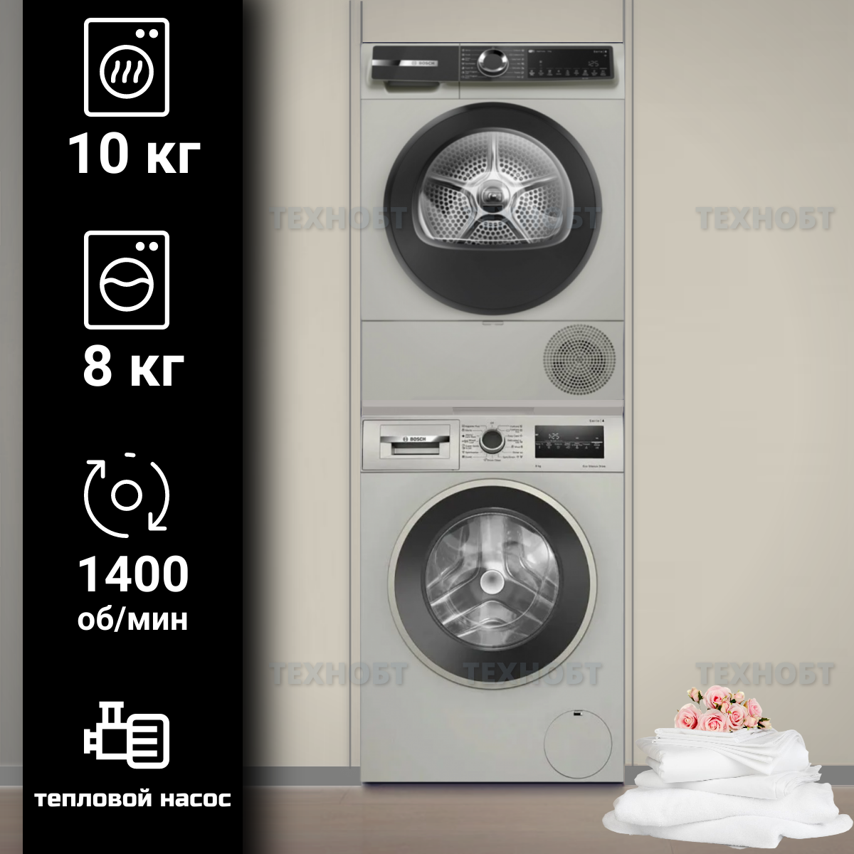 Задумываетесь о покупке новой стиральной машины и одновременно мечтаете о сушильной, чтобы забыть о развешанном по всей квартире белье? Приобретение готового комплекта техники от одного производителя — это не просто экономия времени, но и гарантия безупречного результата. А когда речь заходит о качестве и надежности, бренд Bosch занимает лидирующие позиции. Покупка пары «стиральная + сушильная машина» от Bosch имеет ряд неоспоримых преимуществ: На нашем сайте представлен большой выбор готовых комплектов Bosch, чтобы вы могли выбрать идеальное решение для себя. Давайте рассмотрим две популярные позиции. Серия Logixx от Bosch зарекомендовала себя как эталон надежности и функциональности. Комплекты на её основе — это оптимальный выбор для тех, кто ищет лучшее соотношение цены и качества. (Здесь вы можете вставить описание модели с вашего сайта)