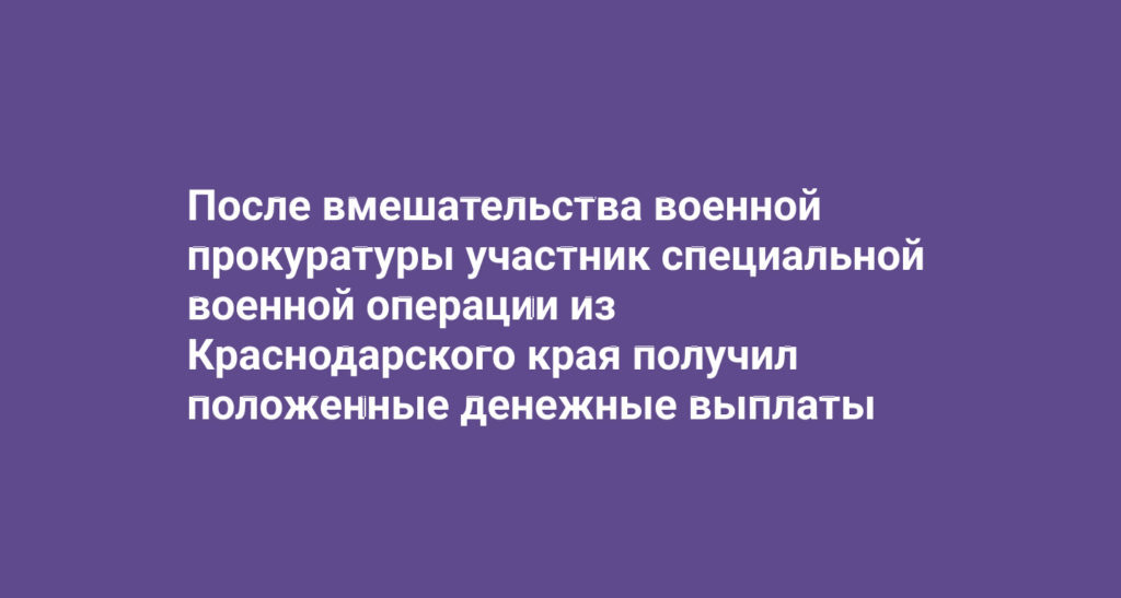 После вмешательства военной прокуратуры участник специальной военной операции из Краснодарского края получил положенные денежные выплаты. 314 военная прокуратура гарнизона выступила в защиту прав получившего ранение участника специальной военной операции.