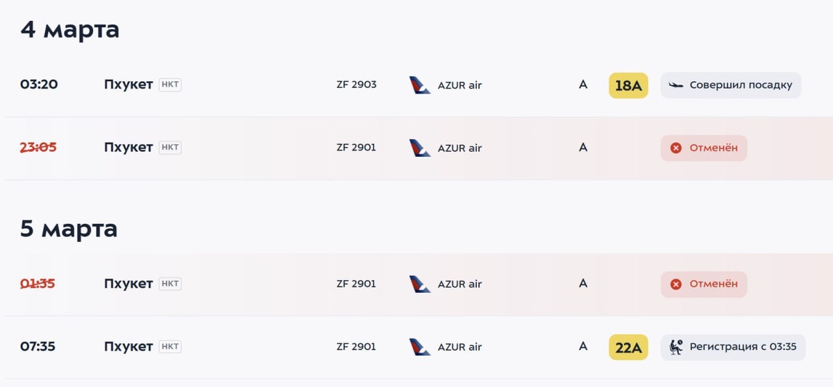 Борт должны были отправить еще 3 марта, но переносили уже 4 раза. Сейчас вылет назначен на 5 марта, 07:35. «Потеряем два световых дня отдыха: планировали прилететь 4 марта в 11:25, а прибудем 5-го в 21:15», – жалуются туристы. Задержки коснулись и других направлений: рейс из Москвы на Фукуок отложили почти на двое суток, обратный борт из Утапао опаздывает во Внуково на день. В авиакомпании объясняют подвижки в расписании временным выводом из эксплуатации одного Boeing 767. Там уверены, что туроператоры оповещают пассажиров о новом времени вылета, туристам, находящимся за рубежом, продлевают проживание в гостиницах. Подробнее написали на ТурДоме. @tourdom