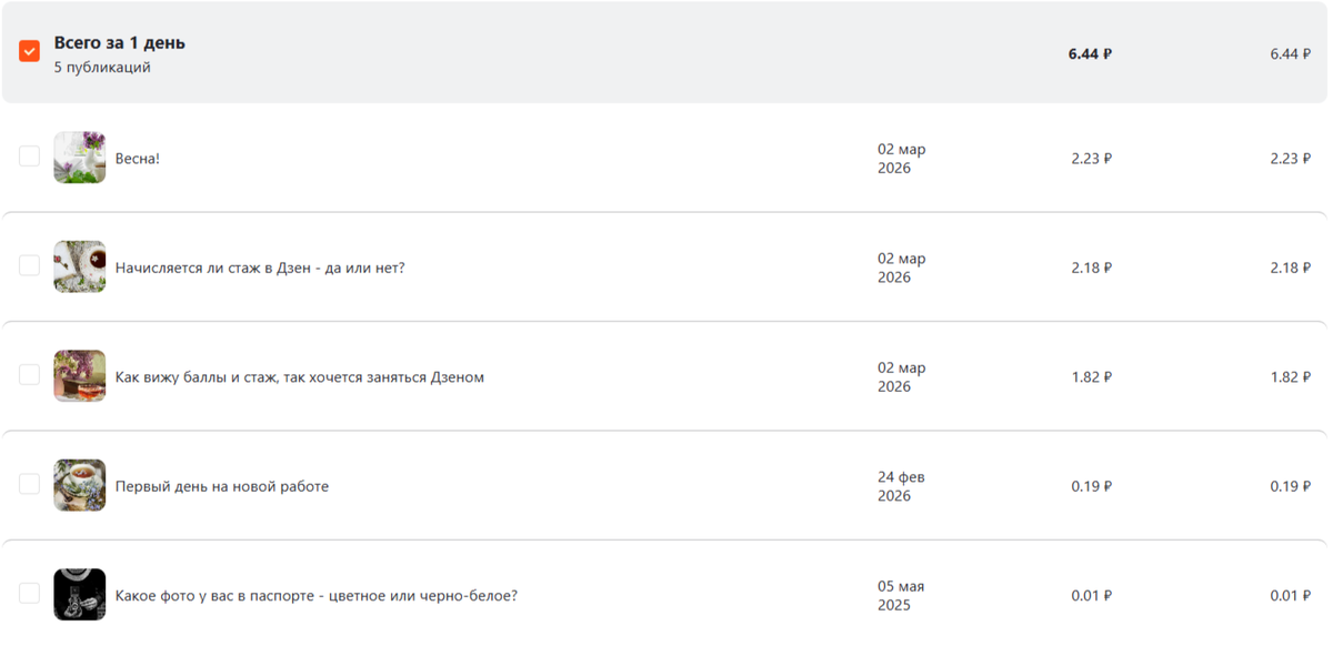 6 рублей 44 копейки! После 64 копеек это просто праздник какой-то. Ну ладно, шутки в сторону, давайте смотреть, что читали и сколько я на этом заработала.