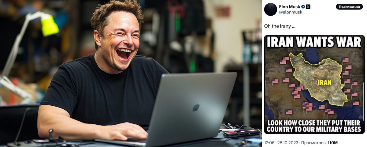 Илон Маск иронизирует над расположением военных баз США "Ох уж эти иранцы", — написал он в X, комментируя мем: "Иран хочет войны. Смотрите, как он расположил своё государство вблизи наших военных баз". А Трамп, без шуток, обвинил Иран в угрозе США и нанес и наносит авиаудары. Видимо так выглядят правила свободного демократического мира. США никому не дают жить лучше, чем у них. Им надо привлекать к себе самых умных, грамотных, учёных. На этом они и держатся. Пиндосы в своё время талибов в Афганистане вооружили. Они сами не полезут, отправят на убой курдских ребятишек. Морковка создания Курдистана опять замаячила. Существует угроза нападения Курдистана на Иран. Потом будут воевать с курдами как с игилом который сами же и создали. Ничему не учит история сотрудничества с пиндосами. История циклична. Разведданные об оружии массового поражения в Ираке оказались ложью, но прокатило, и никого не наказали, так и с Ираном прокатит и его ядерной программой и якобы окончанием создания ядерног