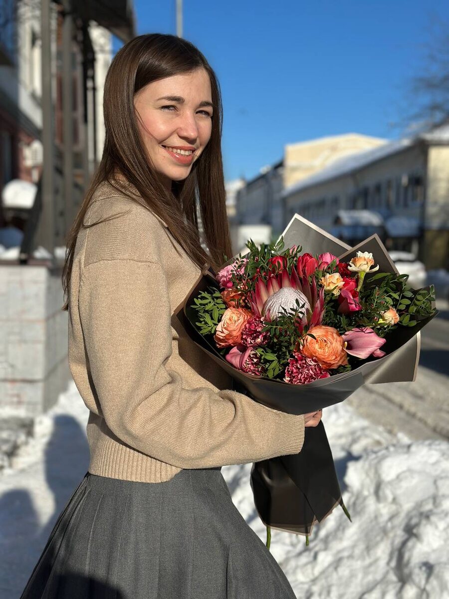 Как подобрать ассортимент на оптовой базе. Как уложиться в бюджет. Как собрать максимум букетов из минимального количества цветов. Чтобы каждый стебель работал, и всё, что вы купили, уходило в букеты без лишних закупок и без списаний. И тогда флористика становится не просто красивой, а ещё и очень умной профессией 🌿 На фото — два букета из того ассортимента, который подобрала Алина.