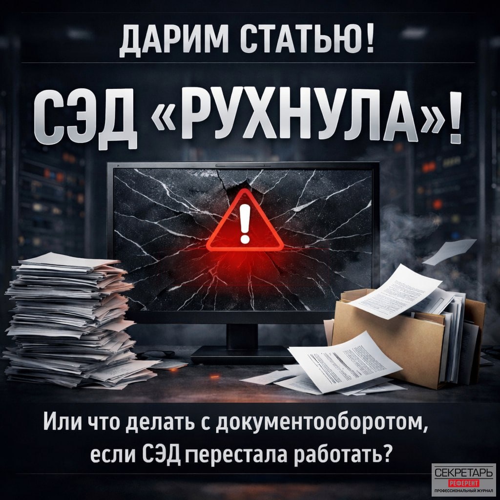 ! Обсудим, как при сбое системы электронного документооборота на один час, на один день, на несколько дней или навсегда вести делопроизводственные процессы – от создания до исполнения документа. А также подскажем, как предусмотреть возможные неприятности: дадим пример распорядительного документа о мерах, принимаемых при сбоях в работе СЭД. Забрать статью