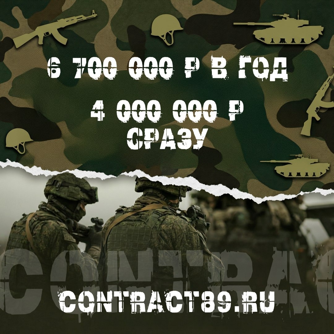 ? Подпиши контракт с ВС РФ и получи: ✔ 6 700 000 ₽ в год ✔ 4 000 000 ₽ единовременно ✔ от 225 000 ₽ ежемесячно в зоне СВО Подобности на сайте: contract89.ru