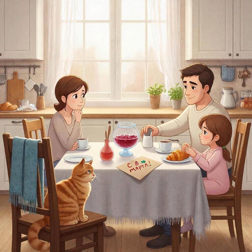 — Знаешь, — тихо сказала она, принимая из рук мужа горячую чашку. — Я сейчас сижу здесь, с вами, и думаю о том, сколько всего должно было случиться, чтобы этот день стал таким, какой он есть. Чтобы я могла просто сидеть и пить кофе в своей пижаме.