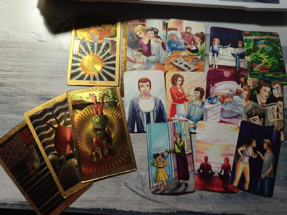 Дорогие дамы, приветствую вас. С вами Наталья — таролог, астролог, нумеролог с более чем 7-летним стажем, 24 на 7. Перед нами триплет слева — это сигнификация вашей истории. Я, как всегда, поражаюсь точности карт. Ведь показать могло что угодно, но здесь выпали: девятка мечей перевернутая, тройка мечей перевернутая и пятерка пентаклей перевернутая. Это суть ситуации. Мужчина заставил вас страдать — жестоко, сильно, разбил вам сердце, лишил надежд на счастливое будущее. Вы вкладывались, вы рассчитывали, что с этим мужчиной вас ждет что-то хорошее, а он поступил с вами как последняя скотина. Вот такая сигнификация. Первой картой выпадает Луна Перевернутая. Это говорит о том, что мужчина психически ненормален. Он просто псих. Либо зависимый, либо нарцисс, либо психопат, либо абьюзер — в общем, человек с серьезными психическими нарушениями. Перевернутая Луна указывает именно на это. И здесь важно: бумеранг прилетел ему уже давно и был с ним всегда. Это касается его психического здоровья.