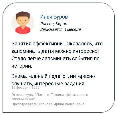 » Учимся запоминать большие объемы информации 8 марта стартует шестой модуль годового курса «Память». Освоим метод Цицерона — один из самых мощных мнемонических инструментов для запоминания информации в строгой последовательности. Метод Цицерона. Как запоминать по порядку Для кого? ➡️ Для учеников 3-4 классов ➡️ Для тех, кто хочет: - быстро учить стихи - научиться запоминать сложные термины, даты, словарные слова, имена, события, столицы - писать сочинения и изложения - улучшить свои результаты на экзаменах Что будет на курсе ✅Освоим метод Цицерона (метод мест) ✅Создадим визуальные образы и воображаемые пространства ✅Научимся строить опорные списки и маршруты памяти ✅ Закрепим навык на практике Преподаватель и автор курса — Ирина Гарнова — ведущий ТРИЗ-преподаватель Систематики, разработчик программ по ТРИЗ и направлению «Память», педагог с многолетним стажем. Этот курс — продолжение годовой программы, которая направлена на освоение современных техник и методик для развития памя