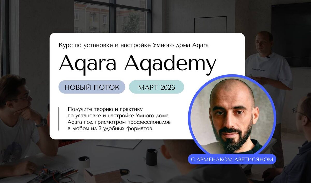 ! 11 марта в Aqara Aqademy стартует online-курс «Монтаж и установка умного дома под ключ». Этот курс поможет вам выйти на рынок установки и настройки умного дома и выстроить качественную работу с клиентами — от подбора оборудования до корректного запуска системы. Приглашённый эксперт потока — Арменак Аветисян, автор профильного YouTube-канала об умном доме. В своих материалах он подробно разбирает устройства, сценарии автоматизации и активно использует решения Aqara в собственных проектах. В рамках обучения Арменак поделится своим взглядом на философию, текущее состояние и будущие векторы развития рынка умного дома, а также ответит на вопросы участников. Эксперты Академии продемонстрируют особенности монтажа устройств, типовые схемы установки и настройки. Обучение подойдёт частным мастерам, интеграторам, дизайнерам интерьеров и всем, кто хочет глубже понять, как строится система умного дома на базе Aqara. В программе курса: — пошаговая установка и настройка устройств; — разбор про