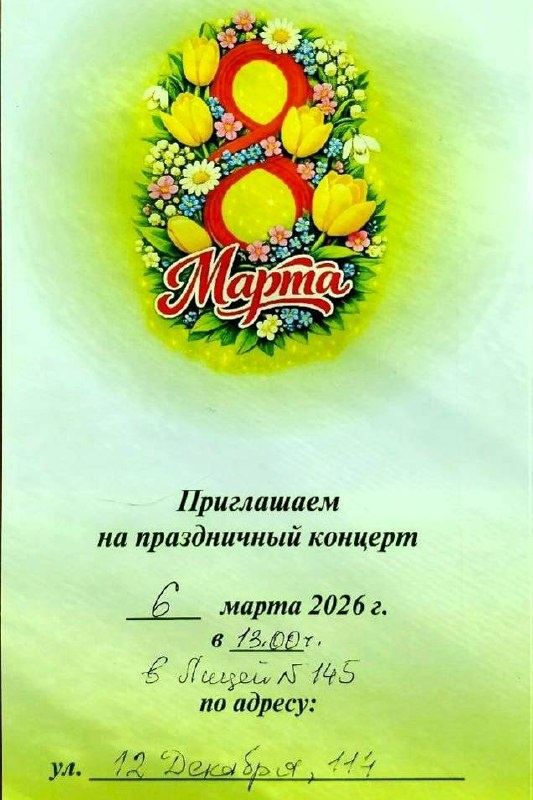 КТОС "Кировец-3" приглашает жителей микрорайона на праздничный концерт, посвященный Международному женскому дню. Гостей ждет великолепная концертная программа, подготовленная с любовью и душой. Начало: 06 марта 2026 13:00 Стоимость: От 300.0 руб. до 1000.0 руб. Адрес: г Омск, 12 Декабря, 114 Организатор: https://vk.com/public69224866 КАО ТОС «Кировец-3» Приглашаем на праздник! Комитет ТОС «Кировец-3» приглашает всех жителей микрорайона на праздничный концерт, посвященный самому прекрасному дню в году - Международному женскому дню! Праздничный концерт состоится 6 марта 2026 года в 13:00 часов на территории бюджетного общеобразовательного учреждения г. Омска «Лицей №145» по адресу: ул. 12 Декабря, д.114. Наши гости смогут насладиться великолепной концертной программой, подготовленной с любовью и... #развлечения_эстрада Узнать подробности, адрес или записаться на событие.