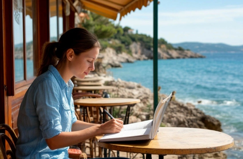 Через неделю Лиза сидела в маленьком кафе у моря и писала.