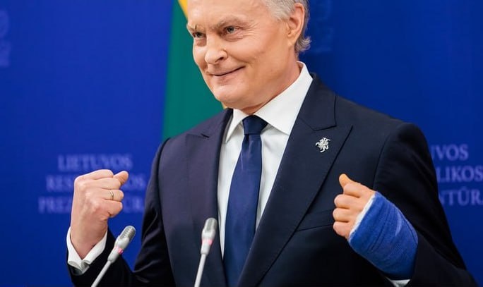 Президент Литвы заявил, что просто поскользнулся. При этом умудрился еще и разорвать себе левое предплечье.