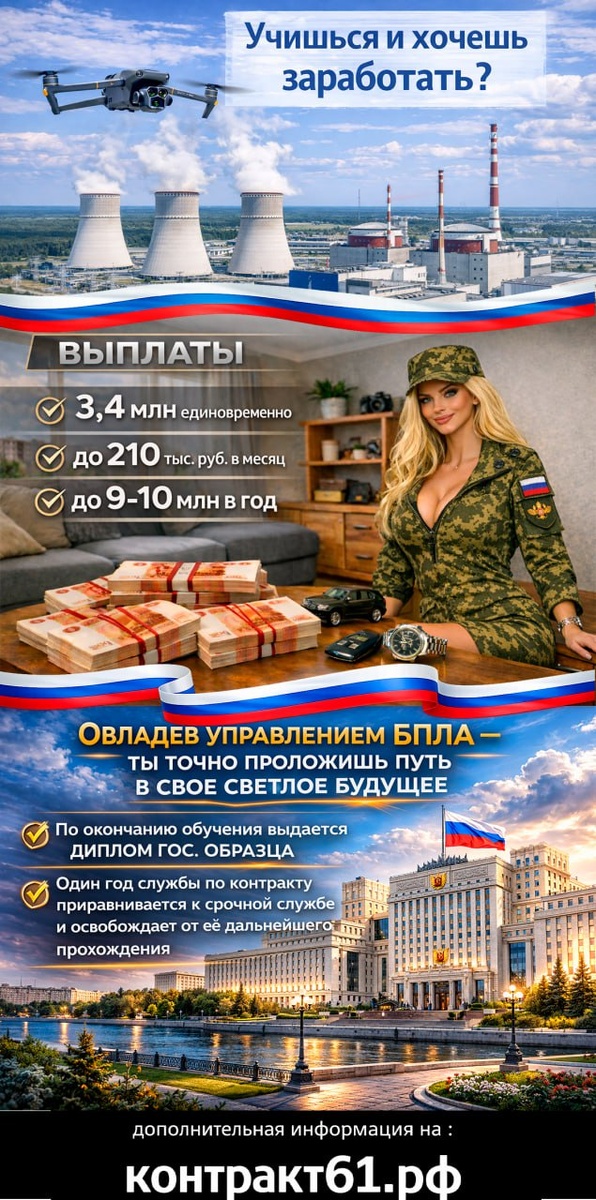 Тебя ждет высокое денежное довольствие и социальные льготы.
