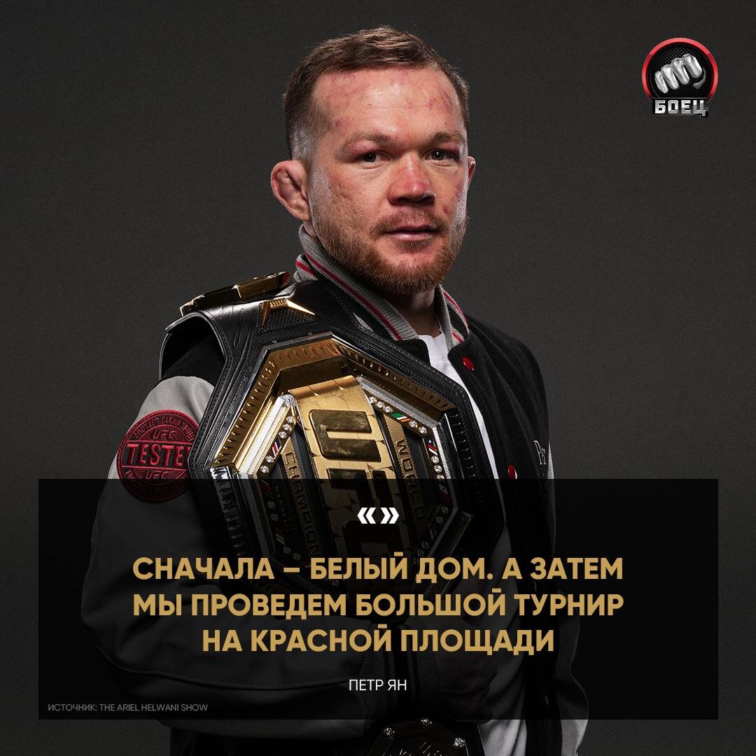 Звучит круто, правда? 🤩 Вот и Петр Ян так считает: 🗣 Я не слышал однозначного отказа по поводу выступления российских бойцов в Белом доме. UFC – глобальная организация, здесь выступают спортсмены со всего мира. Это было бы правильным жестом – показать, что спорт не имеет отношения к политике. Сначала – Белый дом. А затем мы проведем большой турнир на Красной площади. Еще чемп объяснил, почему не хотел бы драться с Умаром на Красной площади: 🗣 На Красной площади нужно организовать поединок с бойцом из другой страны, понимаешь? Если подерутся два бойца из одной страны, то это будет не настолько масштабно. Опять же, всё в планах UFC. Но я считаю так. Что думаете?
