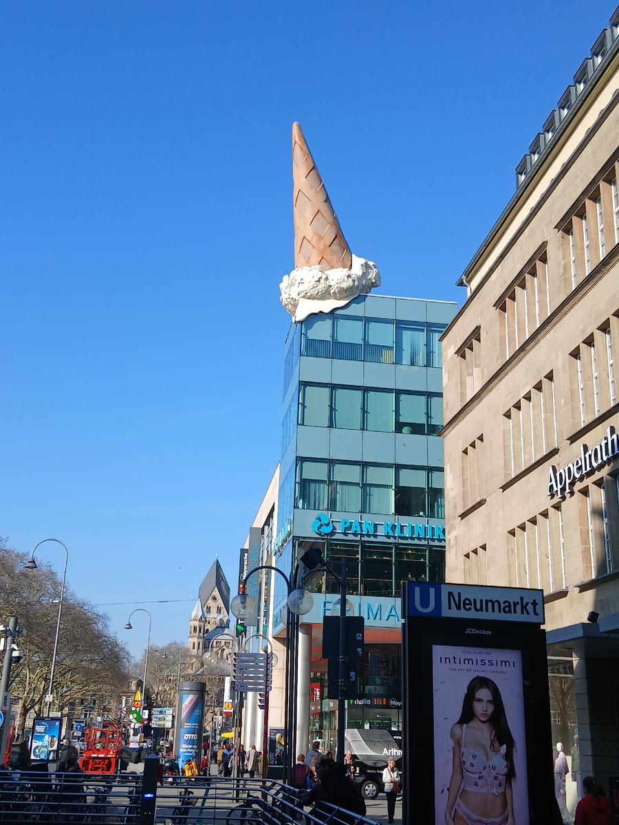 Самый знаменитый и большой книжный магазин с Кёльне - Талиа, вот он, с мороженым на крыше.