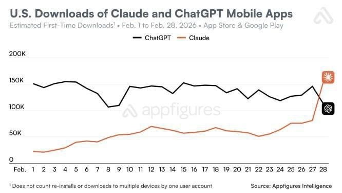 OpenAI is seeing a significant user revolt following its new deal with the Pentagon, which was backed by Donald Trump. ChatGPT deletions have surged 295% and 1-star reviews are up 775%, while rival Claude's downloads have jumped 20x, making it #1 on the App Store. CEO Sam Altman has pledged adjustments to the agreement.