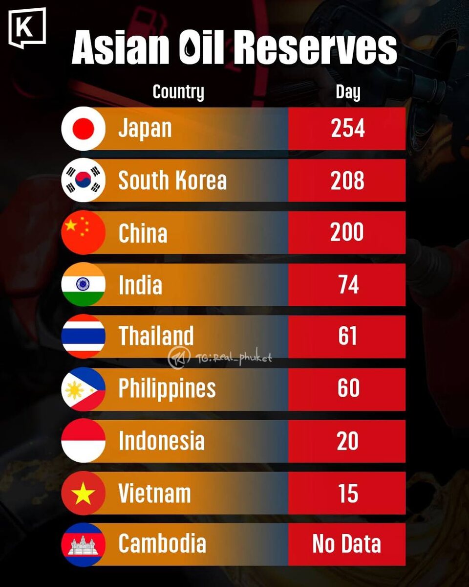 На сколько дней хватит текущих резервов топлива в странах Азии в инфографике Каосод