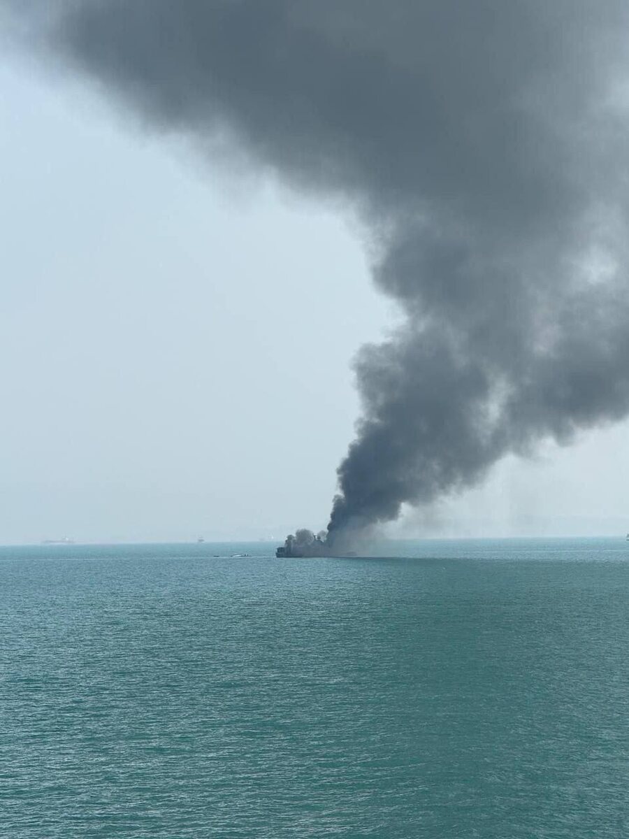 В сети публикуют кадры с горящим корветом Shahid Sayyad Shirazi ВМС Ирана после ударов США рядом с портом Бендер-Аббас.