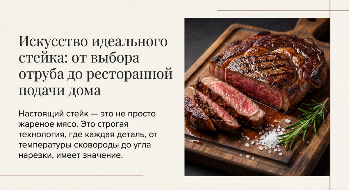 Приготовить сочный стейк с золотистой корочкой дома — это не лотерея, а знание нескольких базовых правил. Настоящим стейком считается только жареная говядина; это мясо со своим характером, которое не прячут под маринадами, а подают, лишь подчеркнув вкус солью и перцем. Все стейки можно разделить на две большие группы: премиальные (классические) и альтернативные. Рибай — абсолютная классика и лучший выбор для новичка. Он вырезается из толстого края спины и имеет много жировых прослоек (мраморность). Именно этот жир при жарке плавится, делая мясо невероятно сочным и ароматным. Филе-миньон — самая нежная и мягкая часть, почти без жира. У него деликатный сливочный вкус, но он менее «мясной», чем другие виды. Стриплойн (Нью-Йорк) — стейк с ярко выраженным говяжьим вкусом и полоской жира по краю. Его часто называют «мужским» за плотную текстуру. Альтернативные отруба (например, Топ-блейд из лопатки или Мачете) стоят дешевле, но могут быть не менее вкусными. Они отличаются более плотными воло