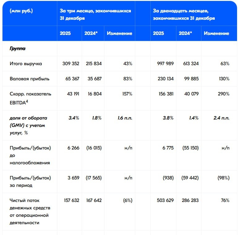 Ozon отчитался за 2025 год: убыток сократился до 0,9 млрд руб. с 59,4 млрд в 2024-м, а в 4 квартале зафиксирована прибыль 3,7 млрд. Банк остается драйвером роста, маркетплейс пока убыточен, но перспективы меняются. Почему это важно: • Финансовые показатели Ozon улучшаются — убыток в e-com снизился на 35%, прибыль в финтехе выросла на 135%, что говорит о стабилизации платформы. • Банк приносит основную прибыль, но маркетплейс может стать прибыльным после повышения логистики и комиссий — селлерам стоит ожидать роста расходов. • Сокращение убытков в e-com указывает на оптимизацию, которая может положительно сказаться на логистике и сервисе. Гипотезы: • Ozon планирует повысить комиссии и логистические тарифы в ближайшее время для вывода маркетплейса в плюс. • Улучшение финансов может усилить конкуренцию с другими платформами, такими как Wildberries. • Маркетплейс может начать приносить прибыль в течение следующего года при условии реализации повышений тарифов. Что делать селлеру: • Внимате