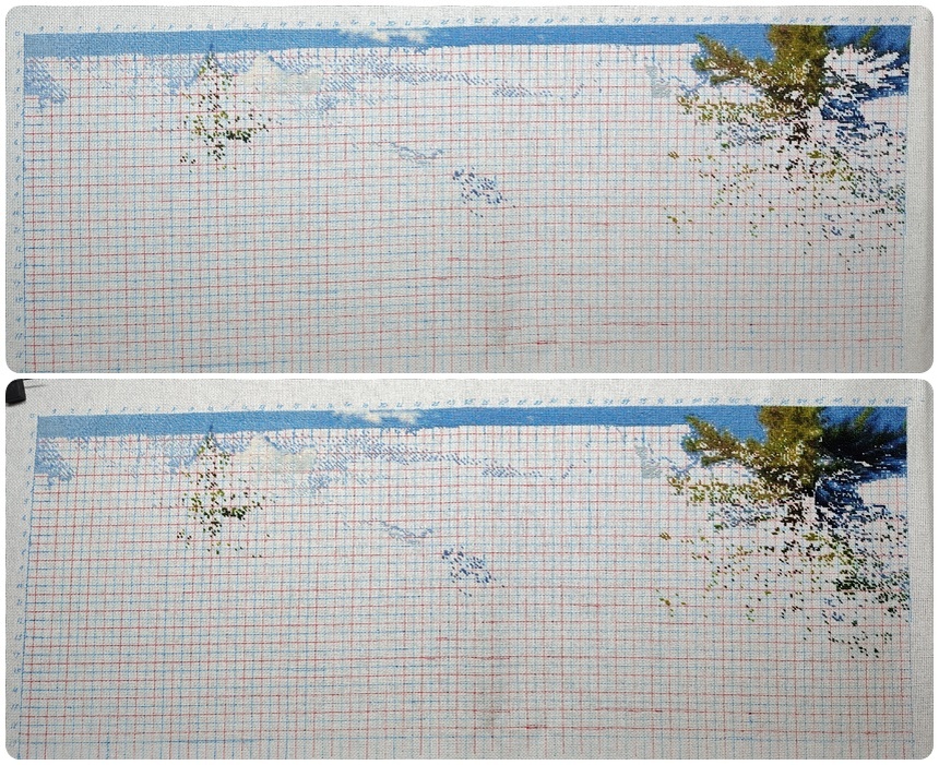 Пейзаж подрос на 1097//. Прошла почти всю крону справа. Осталось там несколько ниточек и приду снова к небу. Правда, в этом ряду, небо будет по веселее. Будут, конечно, и крупные голубые участки, но и начнутся облака. Скучать не придётся. И сегодня.. Как раз мне снова выпал пейзаж. Видать сглазила вчера, подумав, как хорошо работы чередуются. А тут... Прямо вспоминаю старую мудрость: "Хочешь насмешить бога, расскажи ему о своих планах". Думала, я быстренько образец для нового проекта свяжу и как продвину кофточку к финишу! Ага! Щас! Сижу, вяжу образец, смотрю, разглядываю и понимаю, что мне не нравиться кромка. Совсем не подходит к моей задумке. Пошла переделывать схему, потом перевязывать. В общем опять провозилась 2 часа. А обычно у меня все вязальное время около 3х часов... Так что, прогресс по кофточке так себе.. Остается еще 3 ряда сердечек. Ну а образец я вам не покажу пока. Что-то я забыла сделать фоточку сразу, а теперь он уже постирался, сушиться. В общем уже скоро выйдет подр