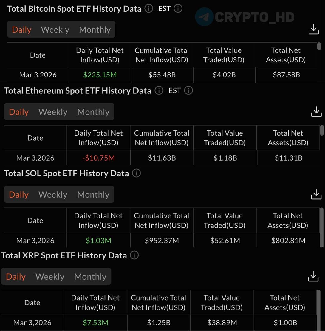 🤔 SV: Финпотоки крипто-ETF за вчерашний день.