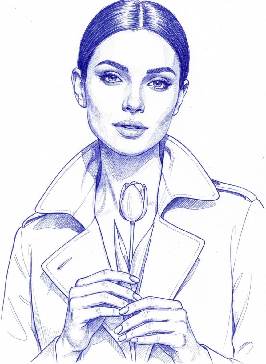 🔥 Забудь про банальные открытки. Делаем стильный арт-портрет, будто нарисованный вручную в блокноте. Всего два цвета, штриховка и твоё лицо — выглядит максимально дорого и крафтово. Закидываем фото в бот, и весенний аватар готов. 🌚 Используя загруженное селфи в качестве точного эталона лица со 100-процентным совпадением (--face_fidelity 1.0), создайте фотографию по описанию, сохранив полное сходство с оригиналом. Художественный [крупный план] портрет женщины, выполненный в стиле реалистичного рисунка [синей] шариковой ручкой на [белом] чистом фоне. Текстура чернил, детальная перекрёстная штриховка, акцент на живых глазах. На ней [лёгкий весенний тренч с поднятым воротником]. Она [загадочно смотрит в кадр, слегка улыбаясь]. В руках [один минималистичный тюльпан, прорисованный тонкими линиями]. Минимализм, стиль скетчбука, высокая детализация штрихов. Как менять: 👀 🎯 Ракурс (замени [крупный план]): - Вариант 1: [портрет по пояс, ракурс три четверти] - Вариант 2: [макро-портрет, ф
