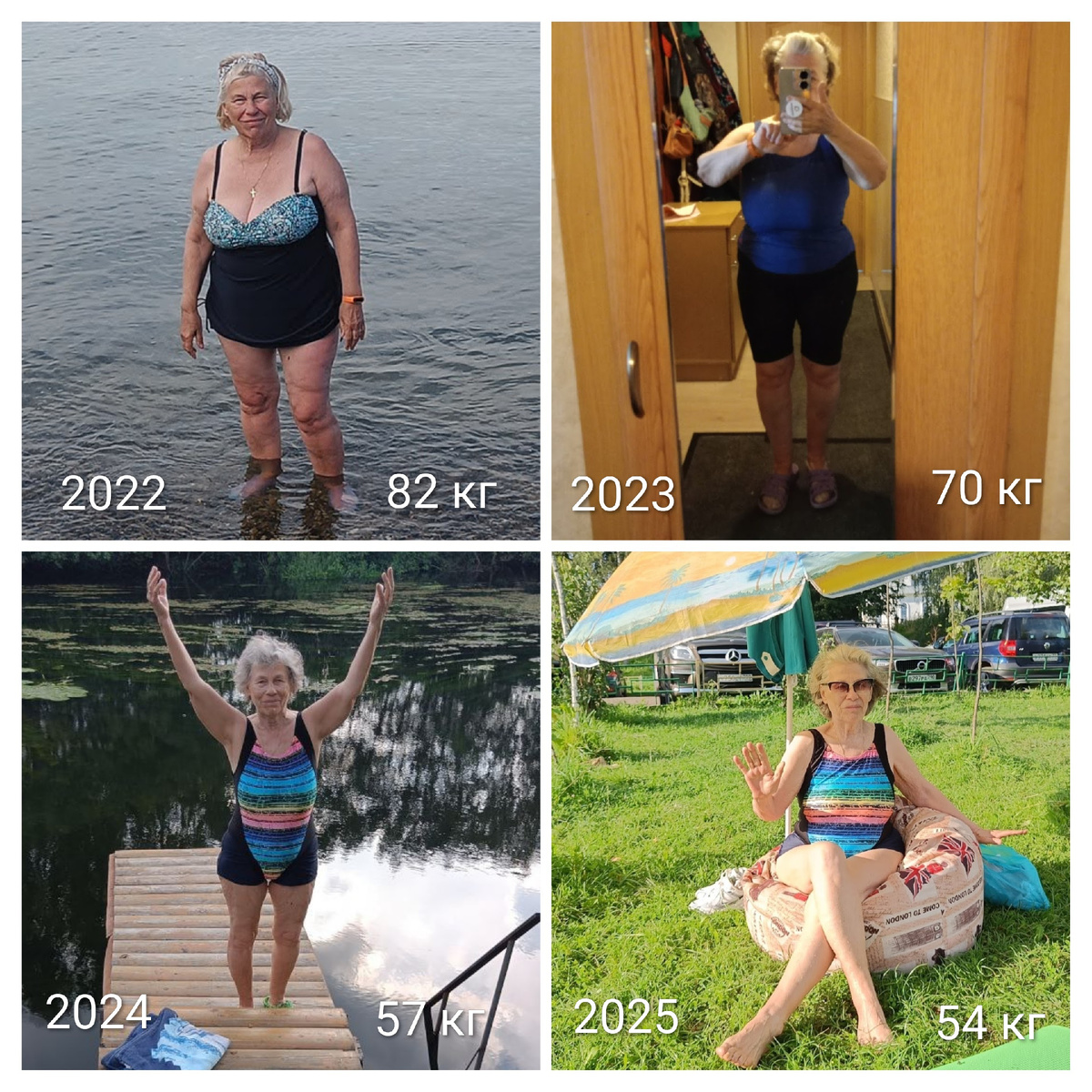 За период с февраля 2023 по декабрь 2025 года мне удалось похудеть на 28 килограммов и вернуться к весу, в котором жила и работала до пенсии в 2005 году. На пенсии за 18 лет раскормила себя до 82 кг, хорошо, что хоть спохватилась! Сейчас я поддерживаю свой нормальный вес около 53-54 кг.