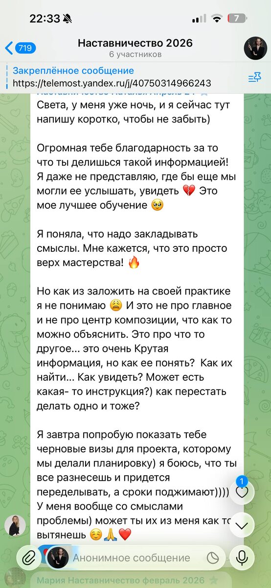 ♥️🥹😭 Это мы сегодня разговаривали о том, как Планировка перерастает в дизайн и как дизайн отражается в планировке, как корректировать планировку с помощью визуальных решений, как Планировка становится точкой отсчета для дизайна, в ней, на этапе планировки, расстановки мебели мы уже должны видеть дизайн будущий, его образы, смыслы, метафоры. То есть нет дизайна (визуала) без планировки. И планировка без понимания дизайна, без визуальных образов - это фигня на палочке!