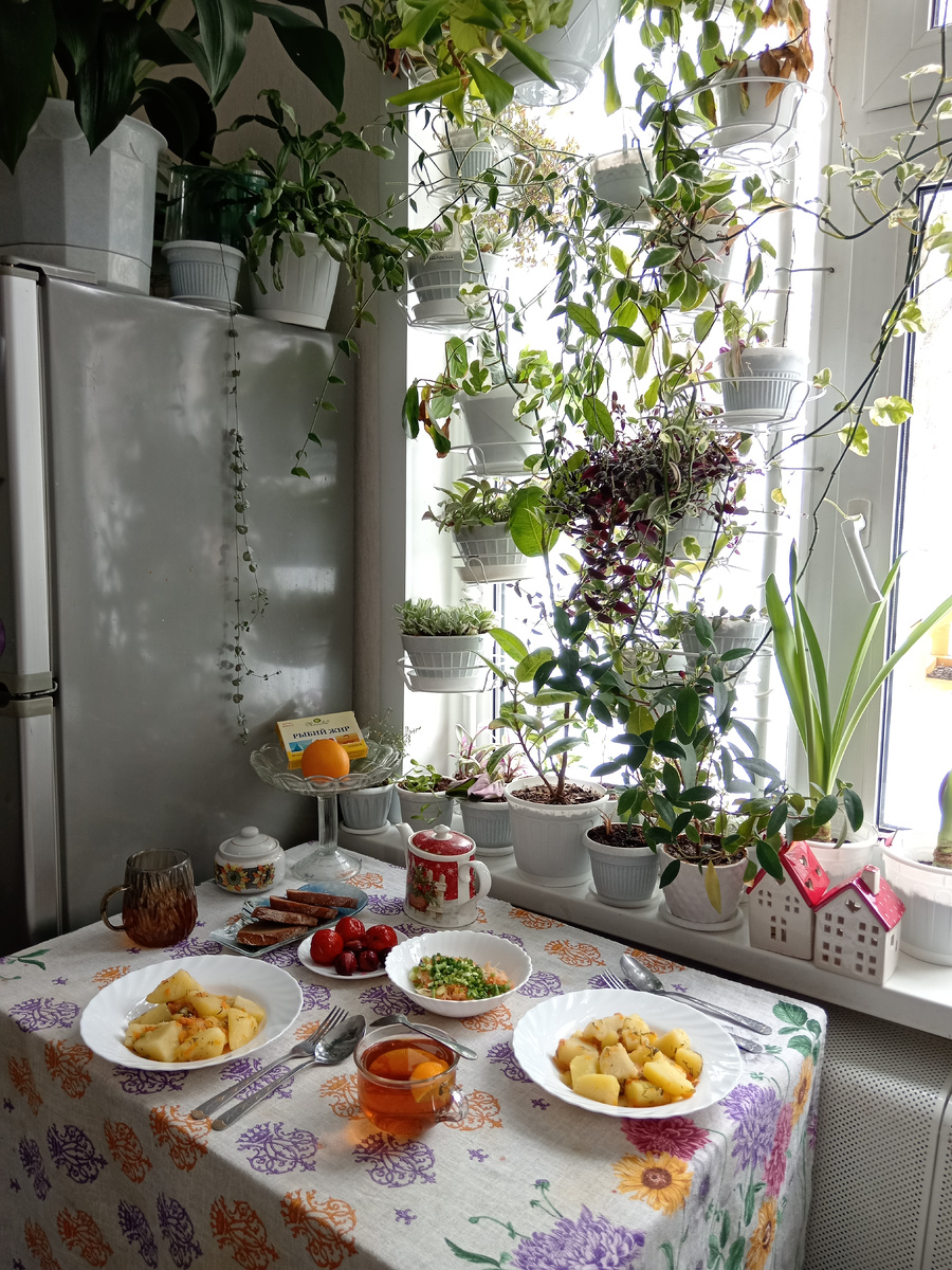 12:10. На обед потушила картошку.