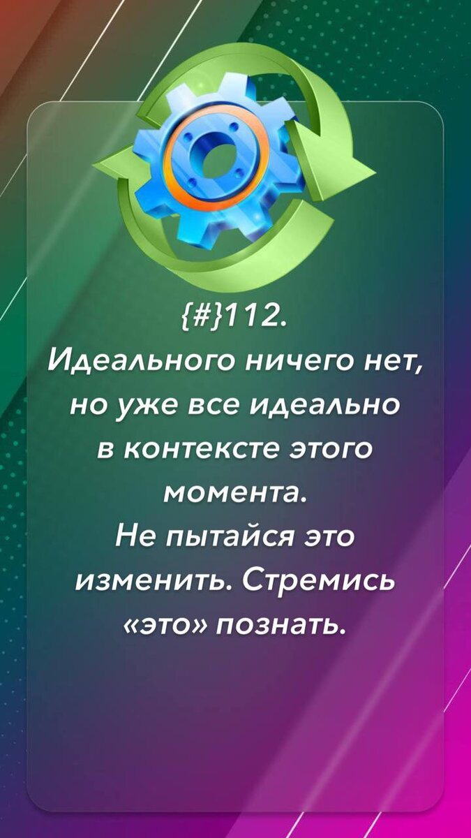 Идеального ничего нет, но уже все идеально в контексте этого момента. Не пытайся это изменить. Стремись «это» познать.