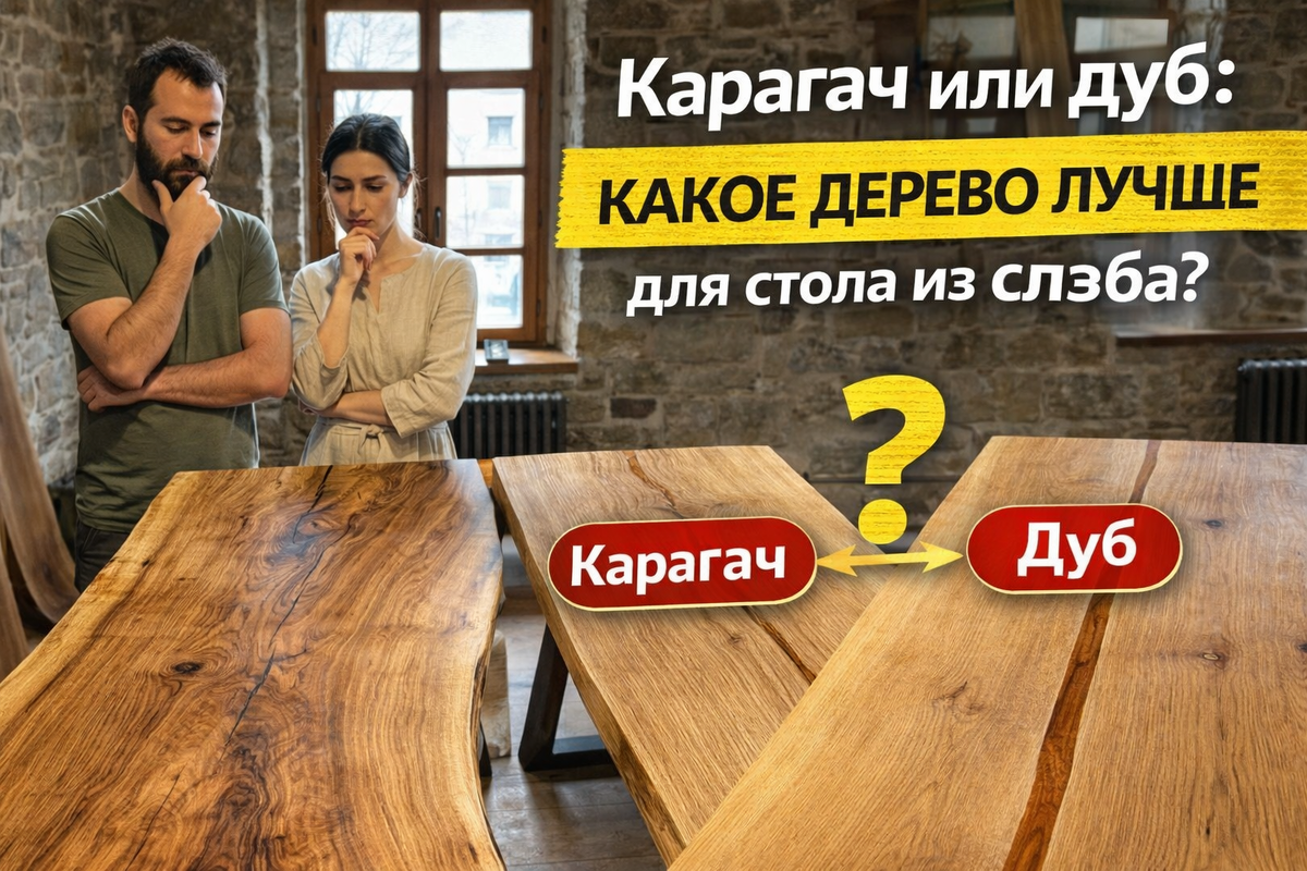 Когда люди выбирают стол из слэба, почти всегда возникает один и тот же вопрос: какую древесину выбрать — карагач или дуб?