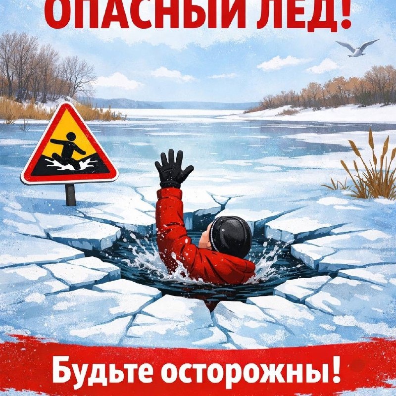 Из-за перепадов температур он быстро теряет прочность, появляются трещины и промоины, которые не всегда заметны с первого взгляда. Риск провалиться под лёд в этот период значительно возрастает. Просим вас быть предельно осторожными: не выходить на лёд, не проверять его прочность и особенно внимательно следить за детьми. Берегите себя и своих близких!
