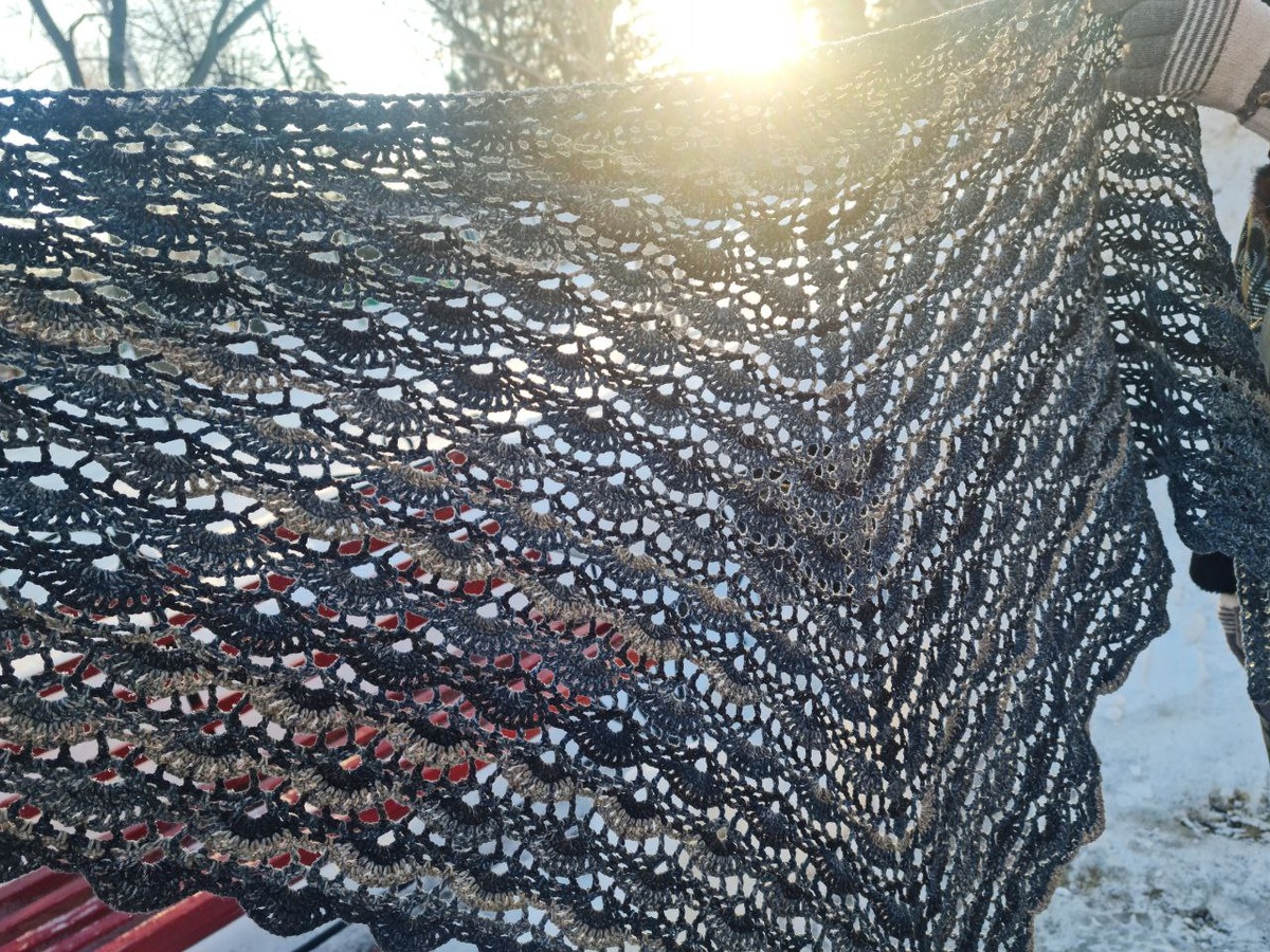 " Вес 286 грамм, размах (верхняя линия) 175см, центральная линия (глубина) 80см, пряжа 75% хлопок, 25% полиамид, крючок 3.5мм. Мягкая💭 Вязала долго, устаю от нее - лежит. Даже не помню, когда ее начала! Результатом довольна! Буду ли вязать еще! Буду! Хоть и это не рационально! Если кто-то хочет купить, пишите! P.S.: Схема имеется, если кому нужно - пишите!