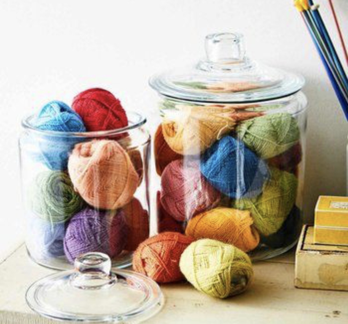Видите клубочки в баночках ? С тех пор как я встретила на просторах интернета это изображение, постоянно думаю какую бы банку освободить и заполнить маленькими хорошенькими клубочками. Теперь вы тоже это увидели, не благодарите.