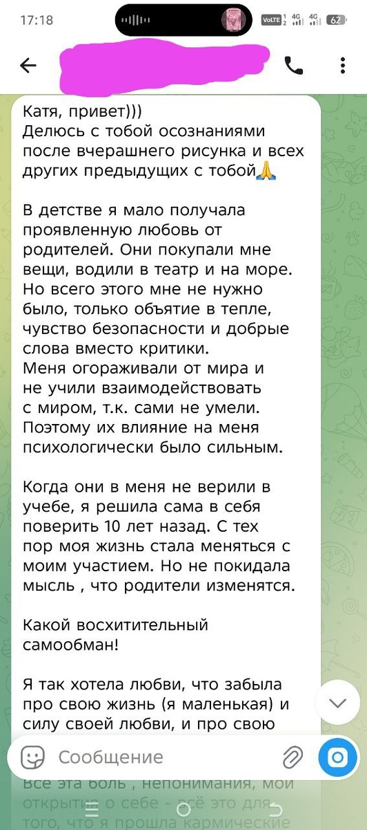 🙏 Это очень сильное осознание. "Я сама могу себе дать то, что родители не смогли" 🔥 Это слова взрослого человека Можно сколько угодно обижаться, злиться на людей, которые дали жизнь. А можно принять и начать жить свою, целостную жизнь💃 Люблю❤️ Благодарю🙏