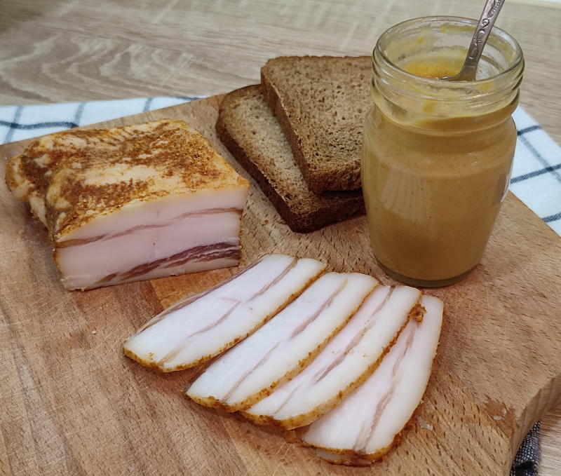 - Финал: Вынимаем, обсушиваем, нарезаем тонко. Подаём с чёрным хлебом, горчицей или хреном. Ой, да не важно с чем – сало прекрасно само по себе!