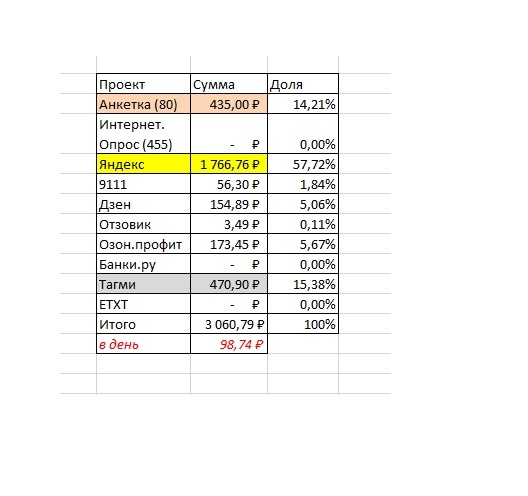 И снова, здравствуйте! Работы как всегда навалилось много, поэтому свой традиционный отчет за месяц делаю лишь 6 марта. Впрочем, особо и подводить нечего. 1. Яндекс. Задания - 1766,76 рублей Самая стабильная для меня площадка. За февраль здесь удалось заработать 1766 рублей. И если в прошлые месяца это позволяло занять только третье место, то сейчас - почётное первое место. 2. Тагми - 470,90 рублей Увы, лёгких и простых в выполнении заданий в феврале было мало (например, исчезли задания "подходит ли песня под запрос", "Malvina. Styles"). Но, что есть. 3. Анкетка - 435 рублей Всё-таки люблю я Анкетку)) Даже в столь скудные времена свою копеечку в мой бюджет приносит. 4. Озон.Профит - 173,45 рублей Также как и на Тагми стало куда меньше простых заданий и куча блокировок. Кажется, эта площадка и вовсе перестанет что-либо приносить исполнителям. 5. Дзен - 154,89 рублей Я совсем обленился и перестал делать публикации на своем основном канале. Да и эти запреты всего и вся всё меньше мотивиру