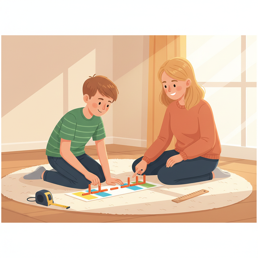 - Не убирайте опоры раньше времени. Ребёнок с математическими трудностями может ещё долго нуждаться в проверке руками. Это нормально. Лесенка на стене, метровая полоска, дециметровая линейка пусть висят месяцами. Однажды ребёнок перестанет на них смотреть — это и будет автоматизация.