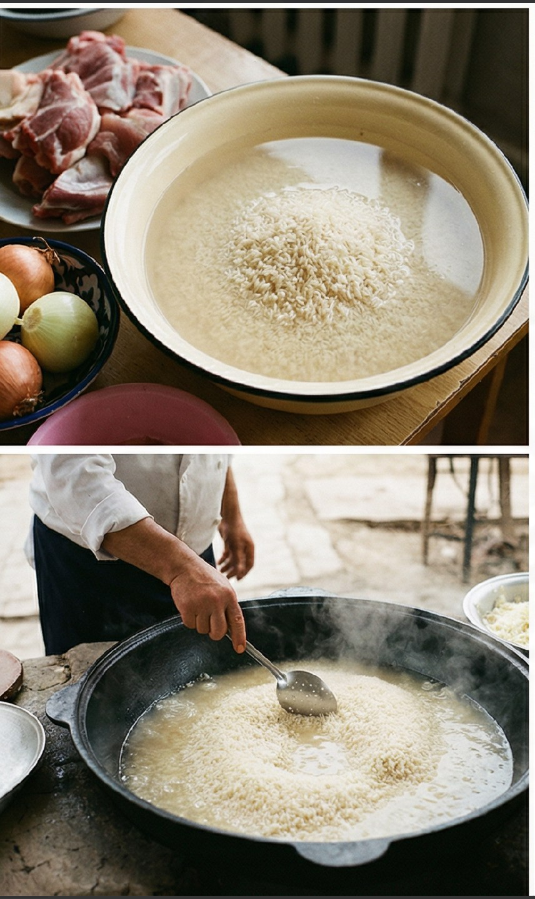 Настоящий узбекский плов готовится в два этапа: