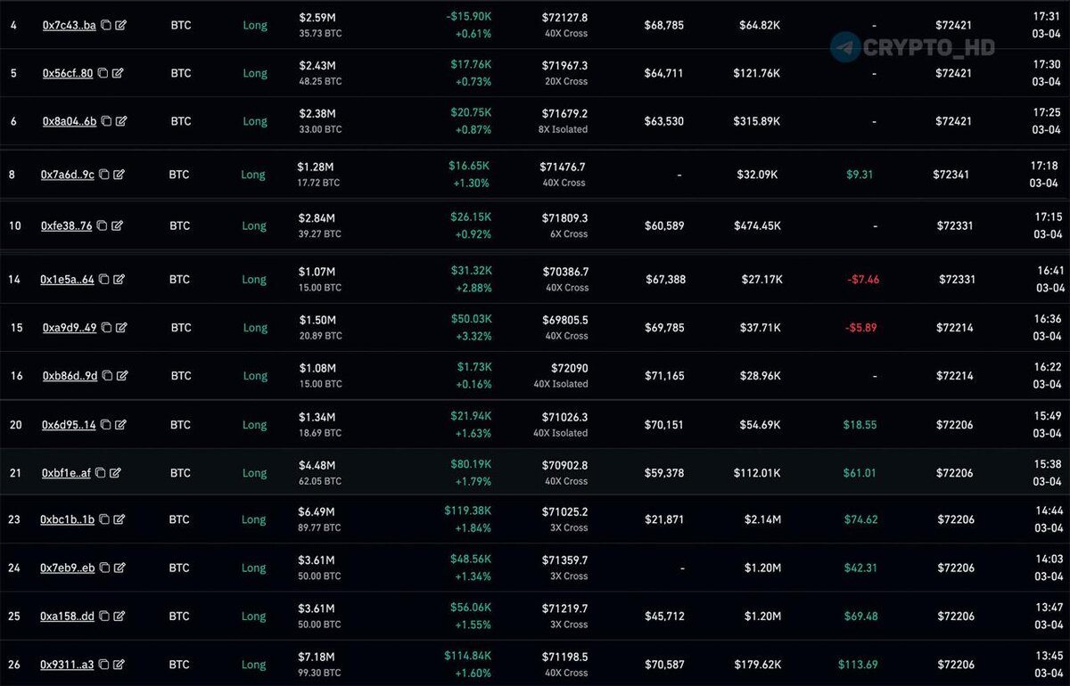 💹 Киты Hyperliquid сегодня активно залетают в лонги по BTC на миллионы $$$.