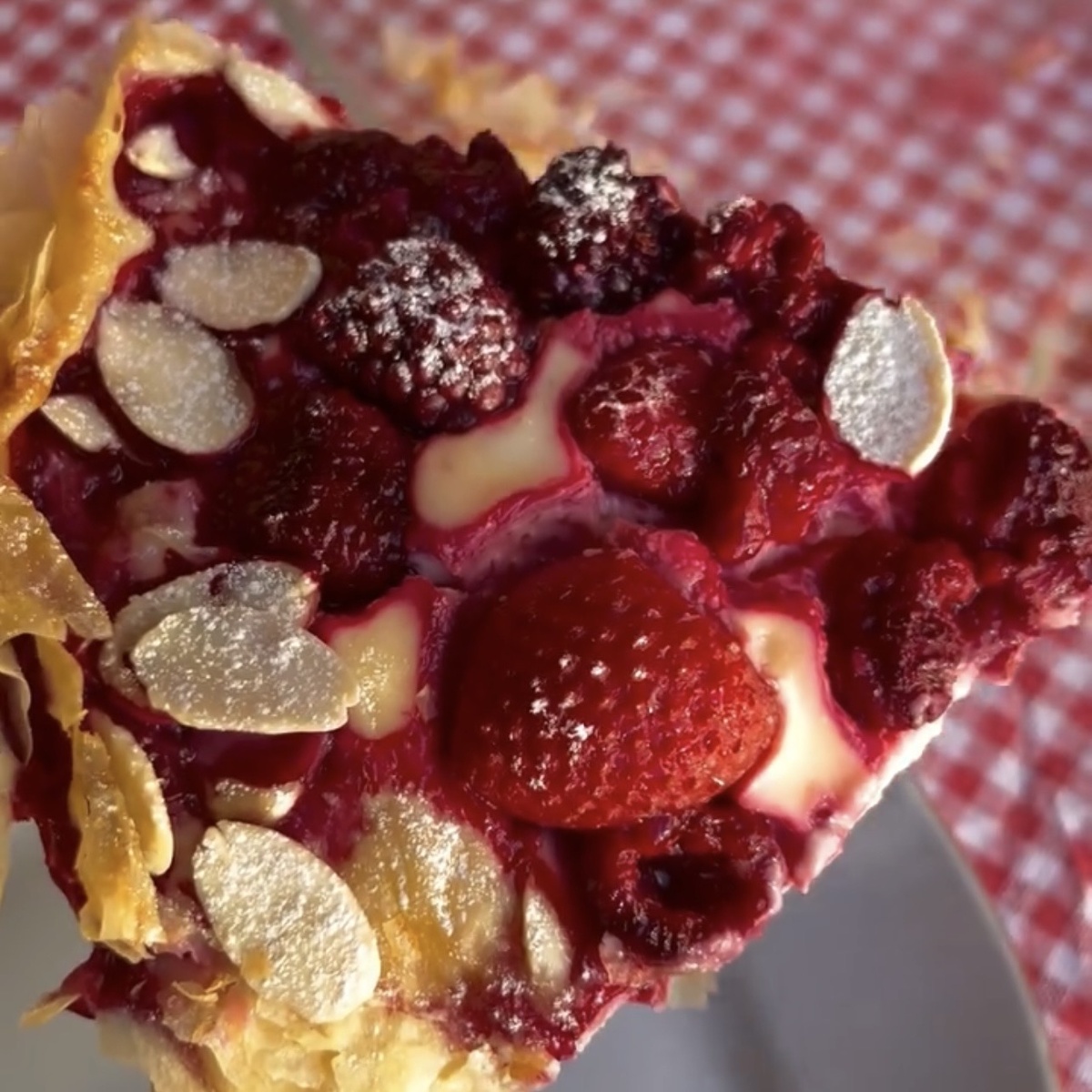 Когда нежный крем из маскарпоне встречается с лёгкой кислинкой лесных ягод и хрустящей тонкой выпечкой, получается очень изящный и сбалансированный десерт. Он выглядит эффектно, но готовится довольно просто — отличный вариант для семейного чаепития или красивой подачи к праздничному столу.