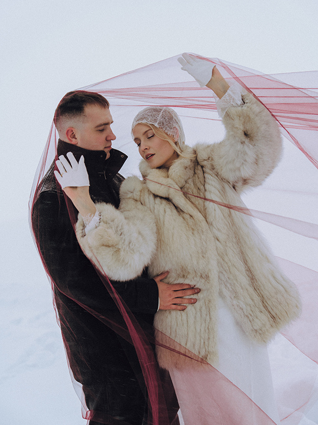 ICE:LOVE:MELT (ЛЁД:ЛЮБОВЬ:ТАЯНИЕ) – это история о любви, как пространстве выбора и принятия. Он: сдержанный и спокойный. Она: живая и эмоциональная. Они не стремятся изменить друг друга. Холод здесь не про дистанцию, а про чистоту и честность присутствия. Когда лёд соприкасается с теплом, между ними возникает новое пространство – тихое, глубокое и настоящее. Съёмка состоялась в день, когда погодные условия были самыми сложными за всю зиму: план «Буран», сильнейшая метель и предупреждения оставаться дома. Но именно это превратило съёмку в подлинное переживание, а не просто визуальную концепцию. Пара прожила этот опыт вместе, сохраняя спокойствие, доверие и внутреннюю связь. Метель стала не препятствием, а частью повествования. Маршрут и локации рождались интуитивно, из-за погодных условий большинство изначальных локаций были заметены. Мы выбирали в моменте, что придало истории особую искренность и визуальную целостность. Сегодня мы делимся первой частью съёмки, а вся свадьба поделена н