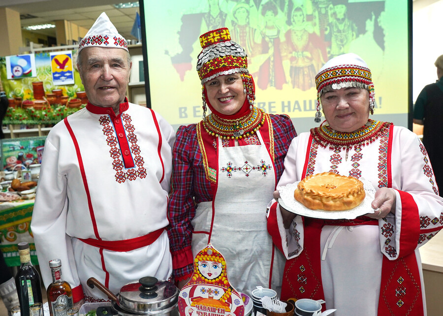 Одним из самых заметных событий текущей недели стал гастрономический фестиваль, организованный Союзом женщин России в Гуманитарном центре – библиотеке имени Полевых в Иркутске. На этом празднике вкуса были представлены блюда русской, бурятской, белорусской, таджикской, татарской, киргизской, грузинской, чувашской, якутской национальных кухонь. – Когда пришло время дегустации, то определить победителя было просто невозможно, потому что одно блюдо совершенно разное и все невероятно вкусные, – говорит председатель Регионального отделения ОГО «Ассамблея народов России» Иркутской области Алена Сипакова. – Делегация Тулунского района приготовила постную кашу и необыкновенный квас для тех, кто сейчас соблюдает пост. Представители чувашского общества «Юлташ» во главе с Вероникой Тимофеевой принесли дождевую кашу, процесс поедания которой представляет собой целый ритуал. Сначала в рассыпчатой каше надо сделать углубление, положить туда маслица и прикрыть кусочком сыра. Кроме этого у них на стол