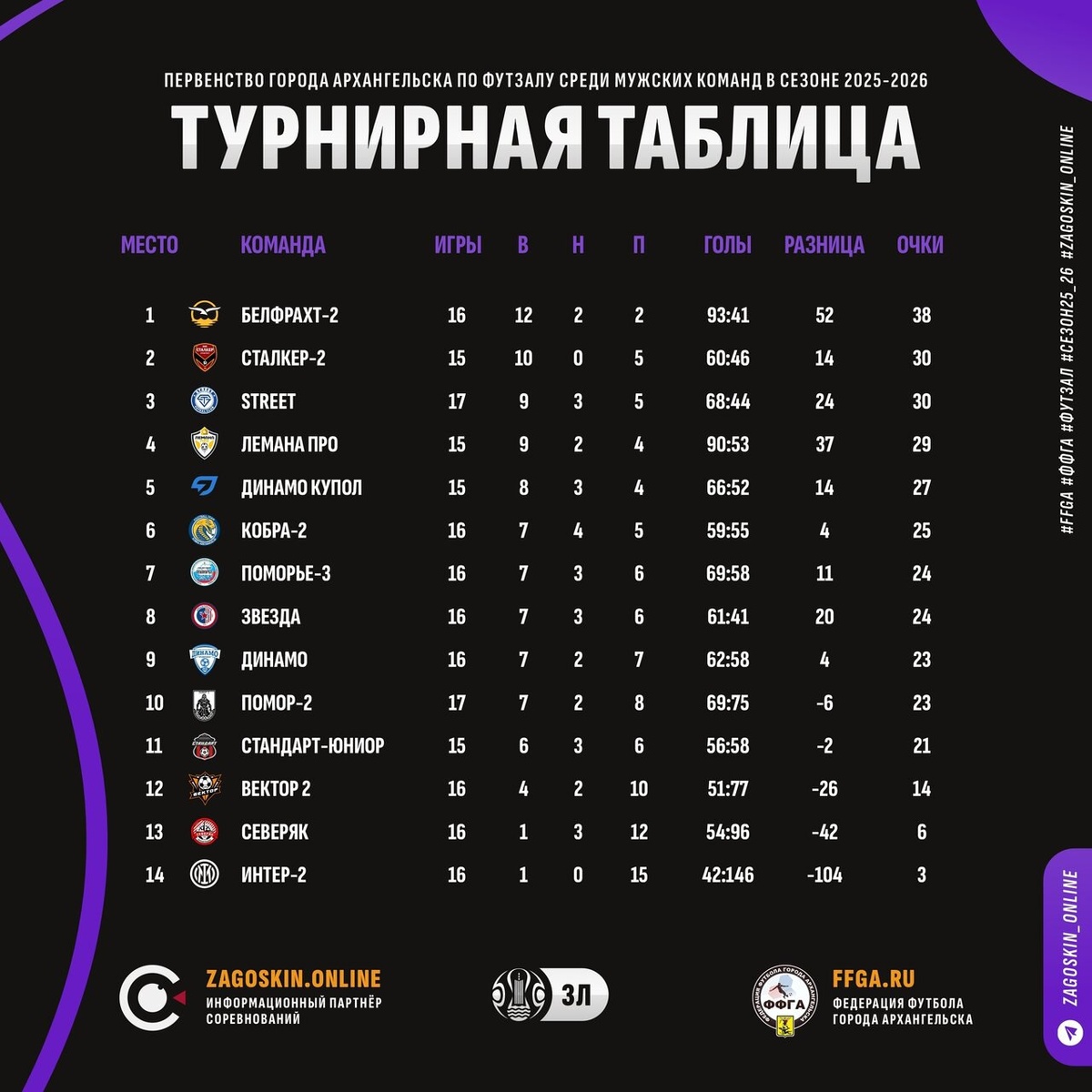 #ффга #футзал #перваялига #высшаялига #втораялига #третьялига #суперлига #кубокгорода #сезон25_26