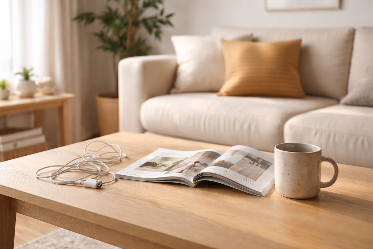 Хорошая новость: большинство из этих вещей решается без ремонта и без шопинга. Смотать провода, убрать лишнее со стола, добавить один источник света в тёмный угол, закрыть дверцы — это полчаса максимум.