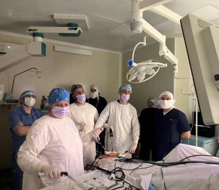 Оперативное лечение было проведено с использованием лапароскопической методики. Это современный, малоинвазивный подход: вместо одного большого разреза хирург делает несколько небольших проколов. Через эти проколы вводятся тонкие хирургические инструмент