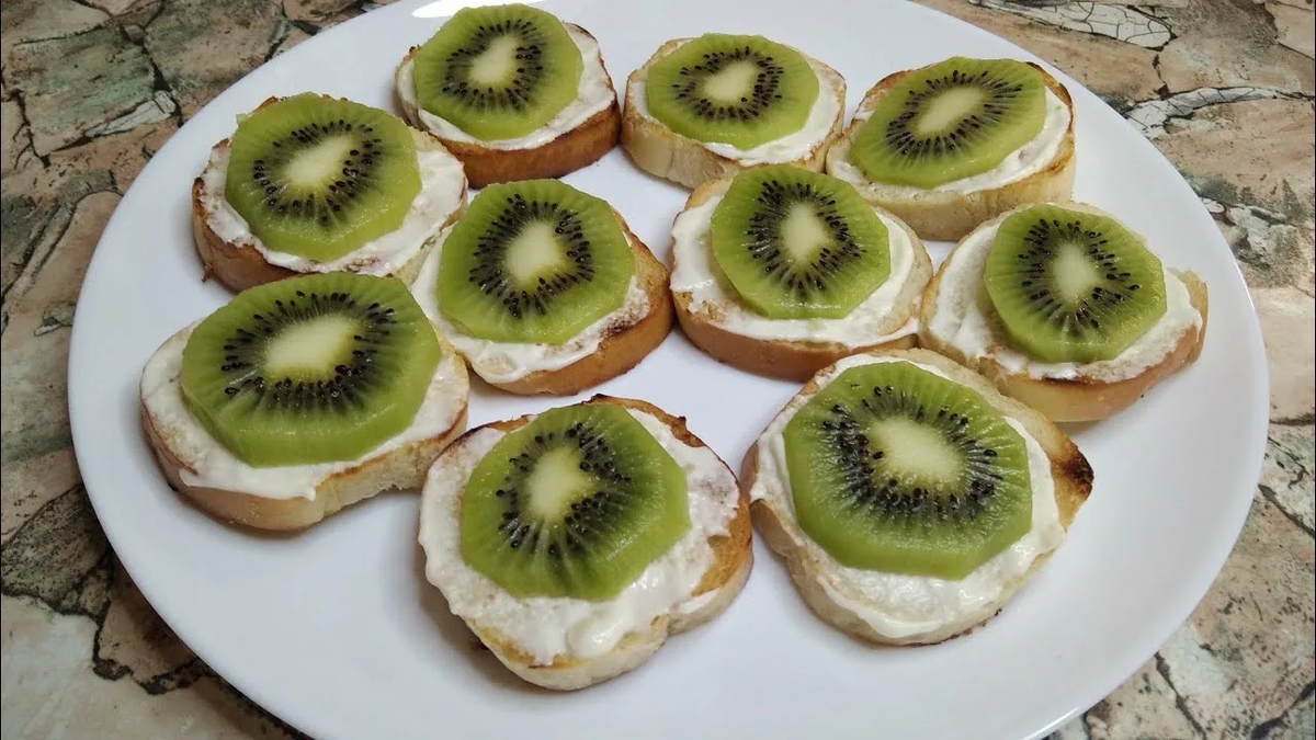 Эти брускетты – дерзкие, яркие и невероятно вкусные. Кисло-сладкие киви в сочетании с соленой фетой и острым перцем создают настоящую вкусовую бомбу.