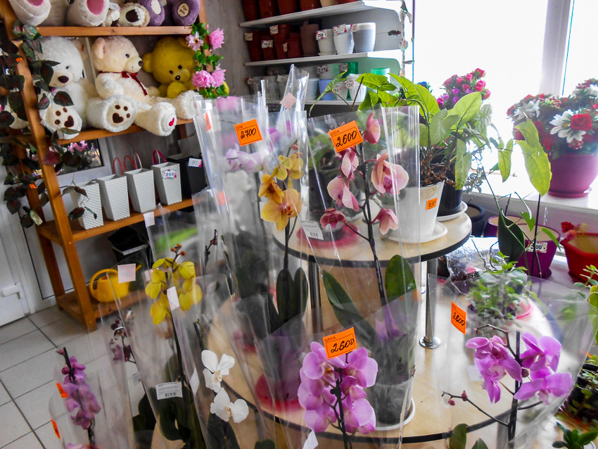 Розы, орхидеи, герберы, хризантемы, ранункулюсы, фрезии, эустомы, тюльпаны предлагаются и в павильонах, и в киосках, и в магазинах. Благоухание зашкаливает - сейчас цветы еще нетронуто свежи.