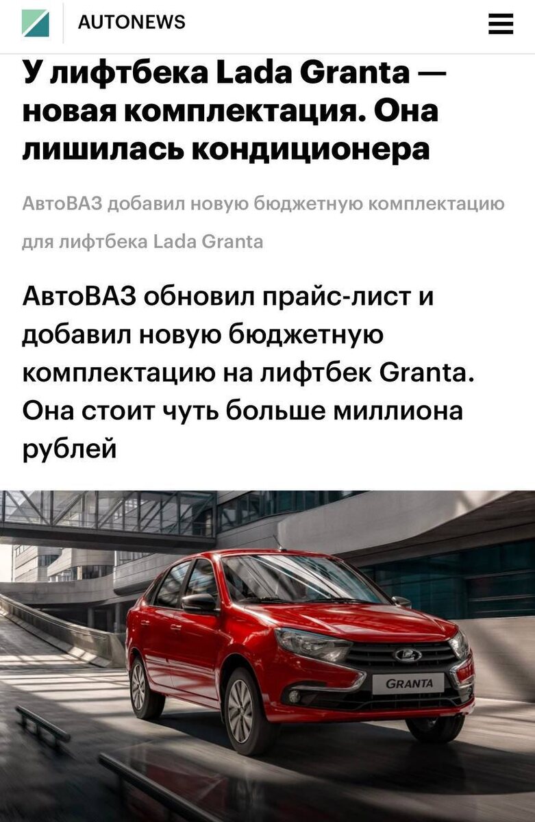 АвтоВАЗ уменьшил стоимость Lada Granta, исключив из нее кондиционер