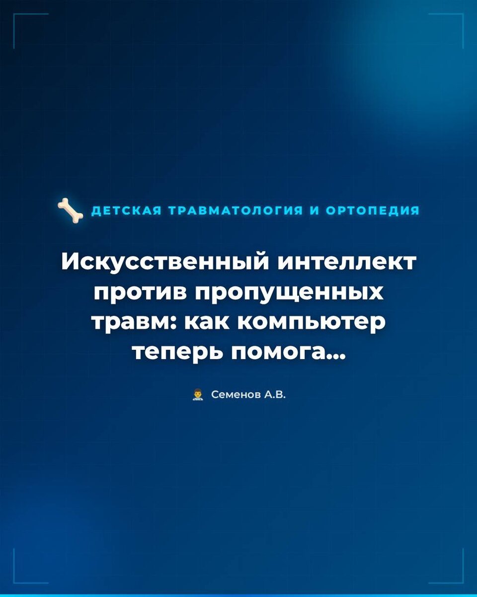 #детская_травматология 👋 Привет, друзья! На связи Андрей Семенов. 👨⚕️ ⚡️ В марте 2026 года в авторитетном журнале J Pediatr Orthop вышло исследование, которое может изменить подход к диагностике сложных детских травм. Речь о переломовывихе Монтеджи. 🦴 Что это такое? Это одновременный перелом локтевой кости и вывих головки лучевой в локтевом суставе. У детей его пропускают в 50% случаев на первичных рентгенограммах! ⚠️ Почему это опасно? Потому что недиагностированный вывих головки лучевой кости не вправляется сам. Без лечения это гарантированно приводит к деформации, хронической боли и резкому ограничению движений в локте. 📊 Ученые обучили алгоритм глубокого обучения анализировать детские рентгенограммы. Результаты впечатляют: ✅ Точность выявления вывиха головки лучевой кости — до 97,5%. ✅ Точность обнаружения перелома локтевой кости — 87,5%. 🔥 Главный вывод: компьютерная модель превосходит стандартную оценку экспертов и может стать «второй парой глаз» для врача в приемном п